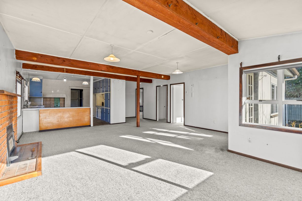 Generous sundrenched open plan kitchen/dining/living areas, 3 bedrooms, 2 bathrooms, separate laundry room. Inbuilt log fire for the cooler winter months. Garaging, carport, outbuildings and excellent off street parking another benefit on the huge well fenced 1416m2 section - this section really is a slice of gold today!