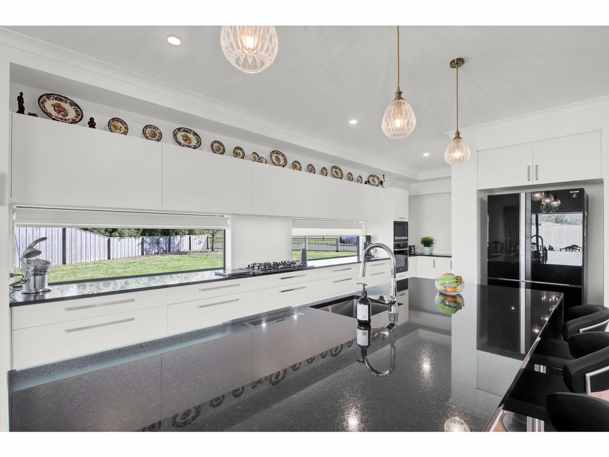 -Gourmet Kitchen: A very spacious open-plan living area with a stylish chef's kitchen, complete with granite benchtops, a breakfast bar, Bosch appliances, ample cupboards & drawers, & a walk-in pantry. Enjoy light & ventilation benefits with extra high stud & tall doors.