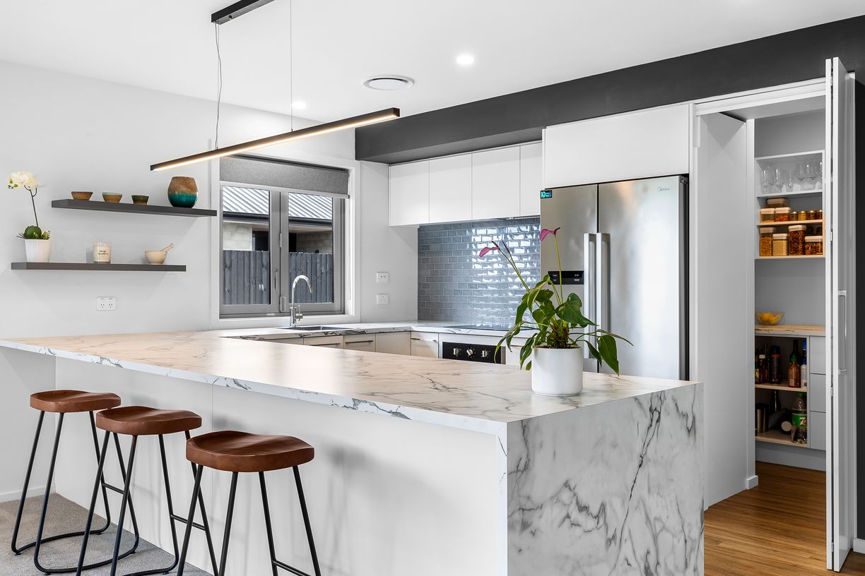 Step inside to discover a generous open-plan layout that connects the kitchen, dining, and living spaces - ideal for family life and entertaining. The stylish kitchen features extensive bench space, quality appliances, and a hidden walk-in pantry.