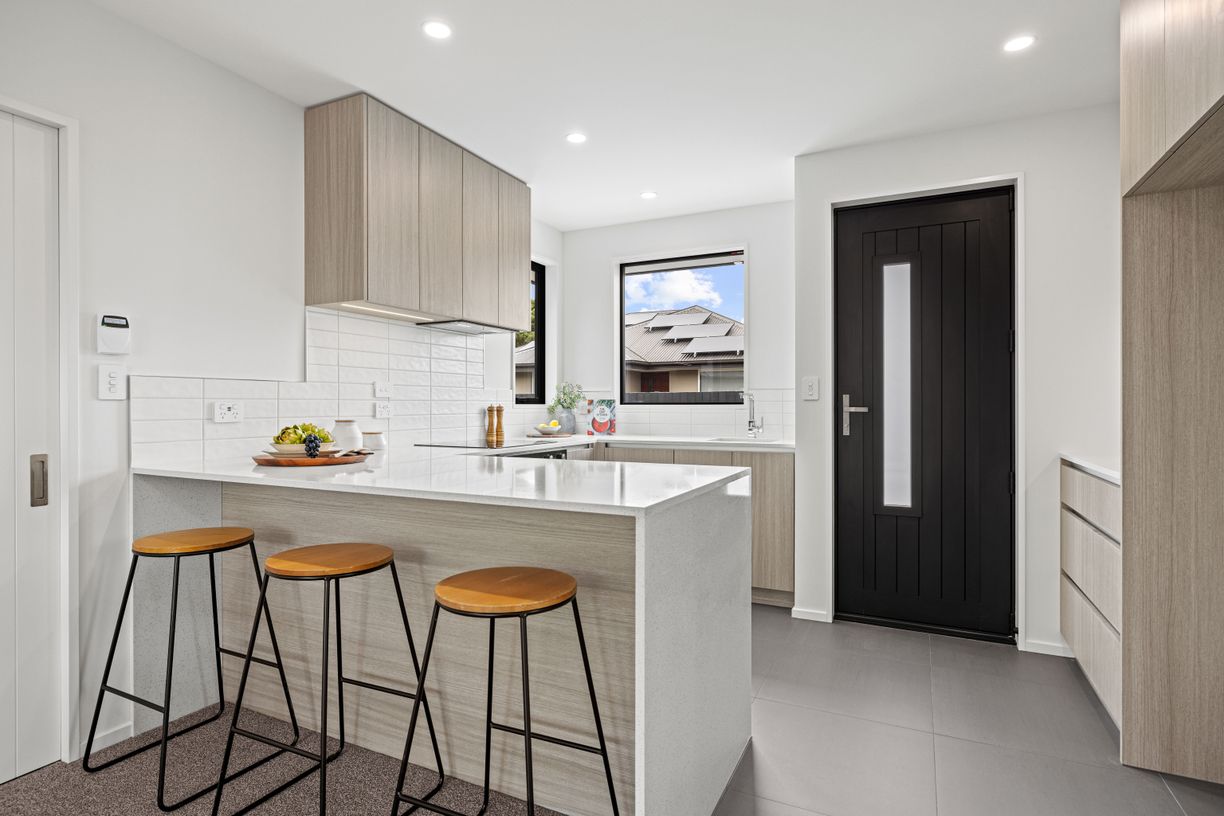Both bedrooms are generously sized with built-in wardrobes, while the layout flows seamlessly through to a spacious living area. The well-appointed kitchen features striking stone benchtops with waterfall edges and top-of-the-range Fisher & Paykel cooktop, wall oven and dishwasher, complemented by excellent storage. Large sliders from the lounge and master bedroom extend the living outdoors to a private kwila deck - perfect for relaxed BBQs or morning coffee.