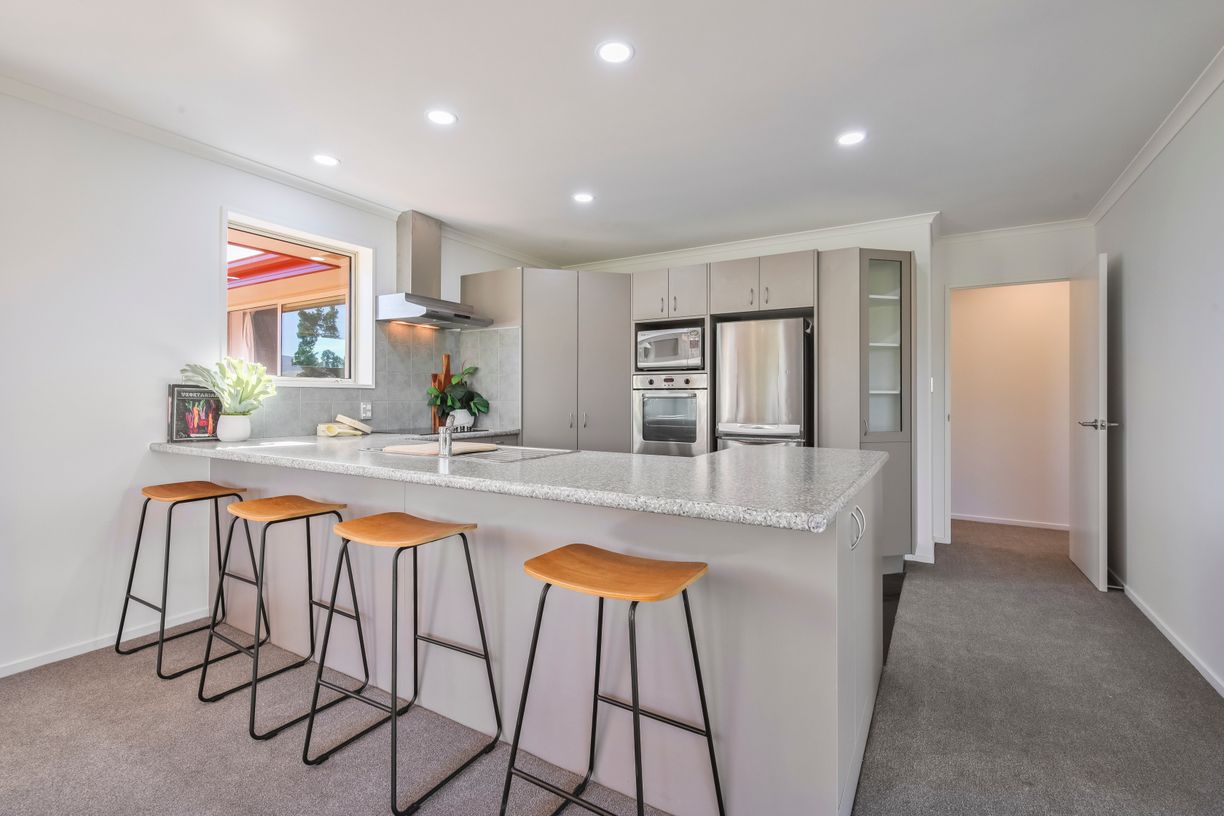 This spacious 179m2 home features four bedrooms, including a generous master suite with a walk-in robe, ensuite, and patio access. The family bathroom and ensuite have been stylishly updated, while fresh carpet, paint, and curtains add a contemporary touch throughout. Stay comfortable year-round with double glazing and two heat pumps.