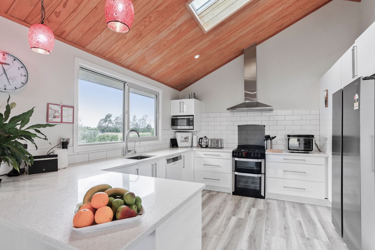 This thoughtfully designed home delivers comfort, functionality and flexibility in equal measure. Offering three spacious double bedrooms, the master suite offers an ensuite and walk-in robe. Double glazing, a wetback wood burner, heat pump and six ceiling fans provide effortless year-round comfort, while the sun-drenched deck invites relaxed outdoor living and entertaining.