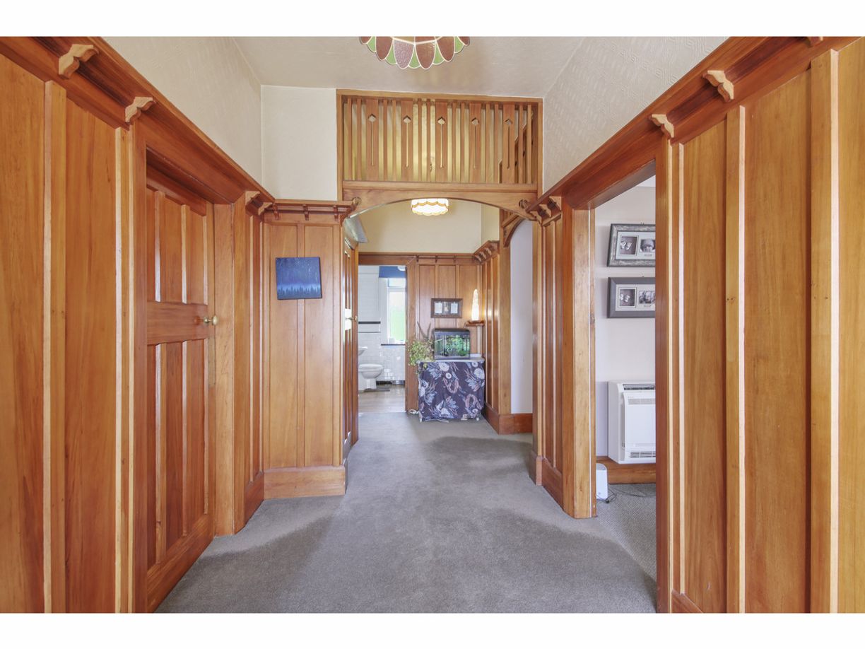 Inside, this appealing home plays host to three double bedrooms (built in robes), a separate spacious modern kitchen and interconnecting living areas. Leadlight windows and well-maintained period features including Kauri wall panelling and fretwork, an ornate open fireplace (decorative only), wooden floors and high ceilings all enrich the timeless appeal; a wood burner and two heat pumps help to maintain comfort all year round. The superb bonus of an office; a beautifully renovated family bathroom, a separate laundry and a second toilet enhance the overall comfort and functionality of the home. A large, enclosed porch provides the perfect place to indulge in afternoon reading/coffee or an excellent mud room.