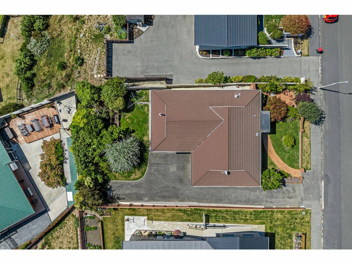 This immaculately presented 1980's 3BR + large rumpus room family home is ideally sited in the sought-after Oakleigh Crescent cul-de-sac. Street-level access is available to the living areas while a sealed driveway leads down to the large double garage/workshop. Stairs provide internal access. Modernised open-plan kitchen, dining and lounge all face north-east with a large free-standing gas fire and floor to ceiling feature schist surround. The lounge flows to a west facing sun-room/conservatory. The family bathroom (with bath) is spacious and two separate toilets and a separate shower room add additional convenience. The large downstairs room is ideal as a guest bedroom, work from home option or as a large teenage retreat. The second toilet is also on this level. Regular maintenance and enhancements are detailed in the builder's report which is available to prospective purchasers. The property is fully-fenced, with the grounds, gardens and trees also immaculately maintained.