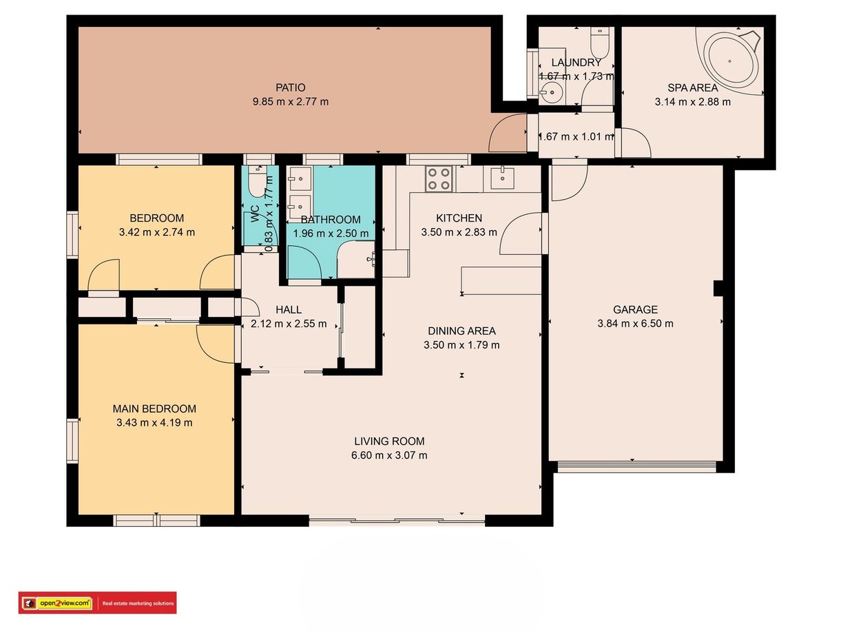 Step inside to discover a practical layout featuring two generous bedrooms, internal access garaging (which is carpeted) and the bonus of a dedicated spa room ( spa negotiable) perfect for unwinding at the end of the day. This conveniently has a 2nd W/C in the laundry. It features a well sized open plan living area with pitched ceilings creating a feeling of even more space.