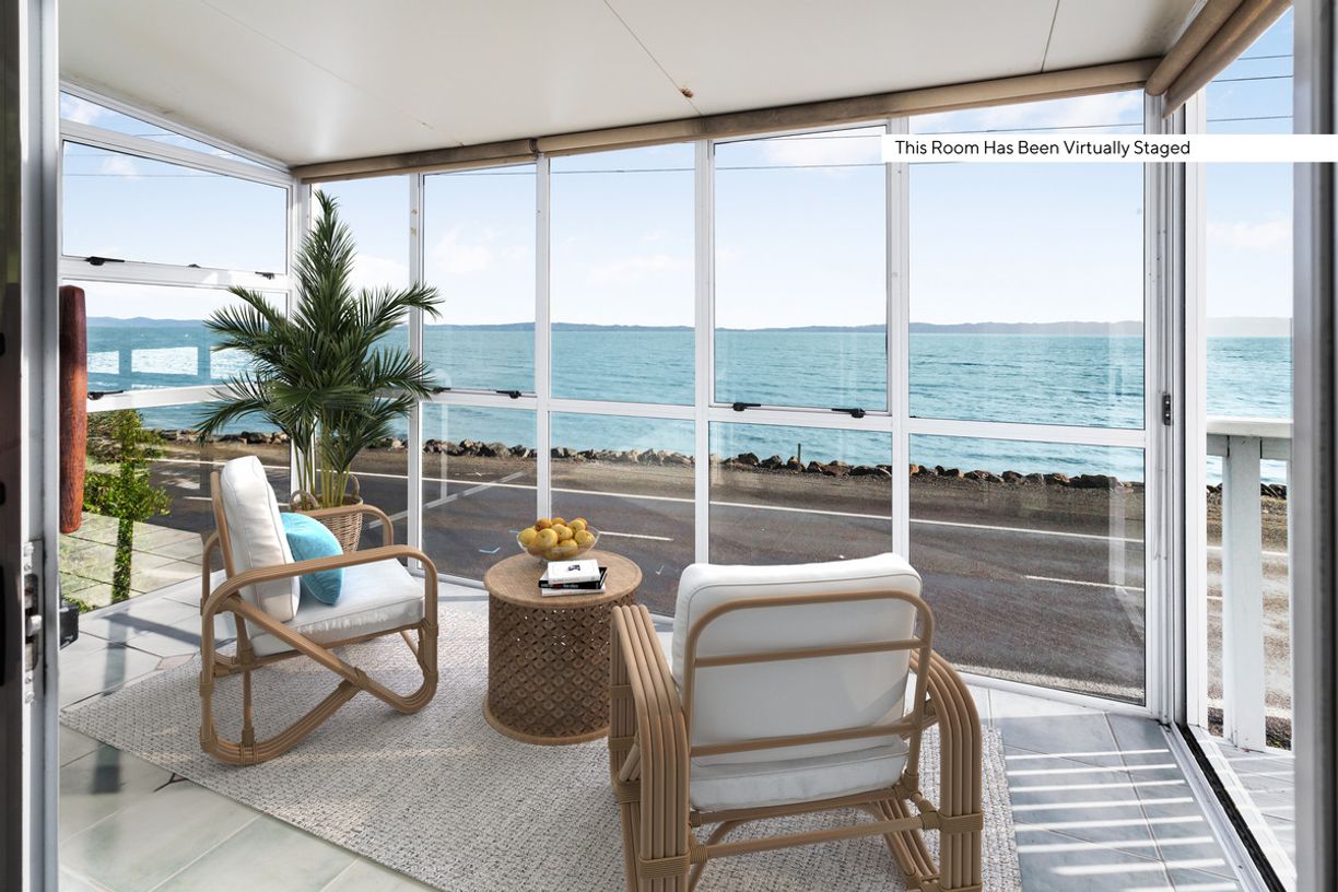 One of the standout features of this home is its extensive westerly sea views across the Firth of Thames, providing breathtaking sunsets from the comfort of your lounge or conservatory. To the east, a covered outdoor deck and a fresh water waterfall offering a serene natural backdrop, creating a peaceful ambiance.