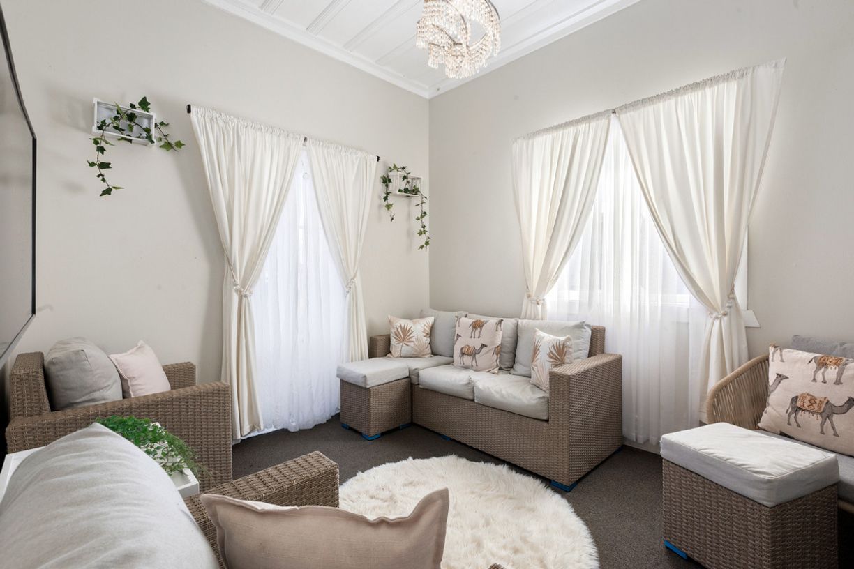 A beautifully refreshed back room opens onto a deck area, providing a delightful spot to enjoy the rural views of the surrounding hills, whether inside or outside, morning or evening.