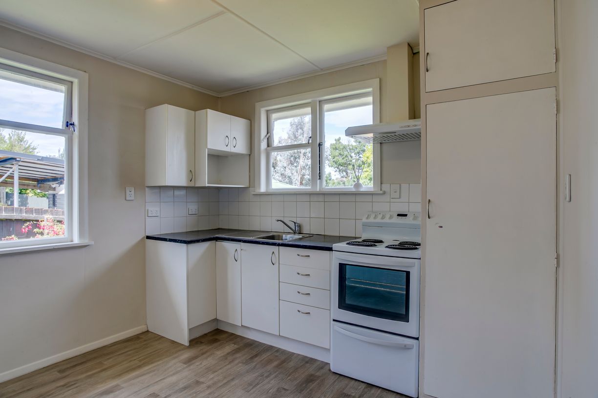 - The tidy kitchen boasts plenty of storage, making meal preparation a breeze.