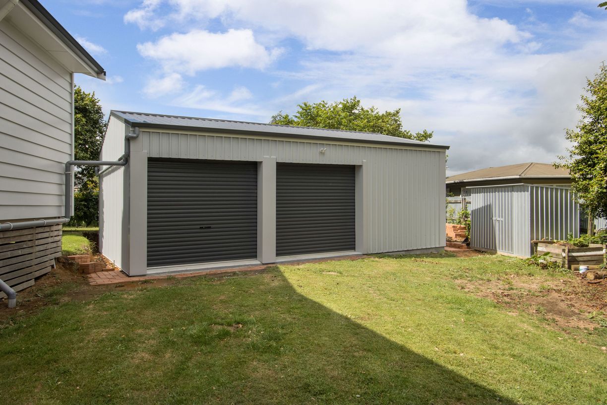 • Large double garage and two-bay shedding plus workshop